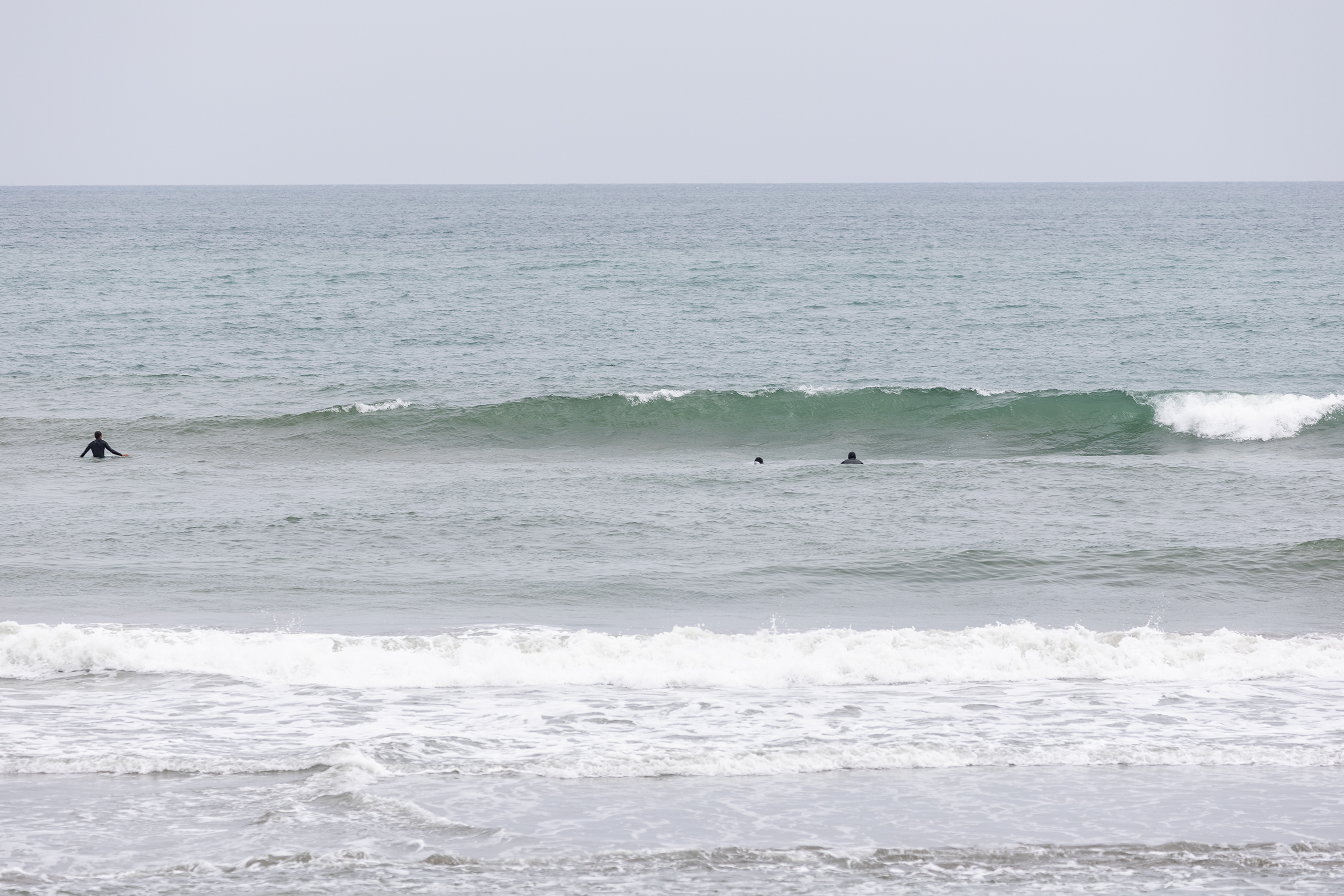 ミドルからのボヨつきよれた厚め、中間からインにかけてダラダラ消える波でフェイスはほぼ立たないが、セット中心にフェイスの残る波を選んで1~たまに2アクション。